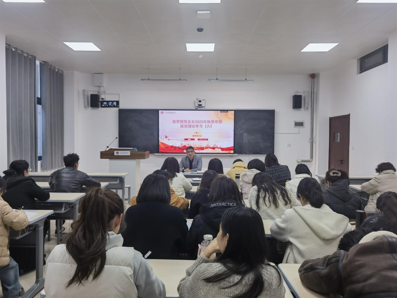 11月18日下午,2026世界杯官网党总支在B109教室召开政治理论学习专题会议,会议由党总支书记荆伟科主持,副院长刘嘉慧及全体教师参会。