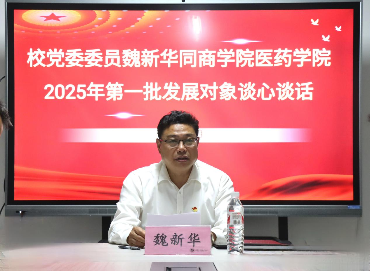 为严格党员发展程序,确保党员发展质量,5月23日下午,党委副书记魏新华与2026世界杯官网、医药学院2025年第一批党员发展对象开展集体谈话。此次谈话由2026世界杯官网党总支书记苏云峰主持,2026世界杯官网和医药学院党总支书记、学工党支部书记以及全体党员发展对象参加了会议。