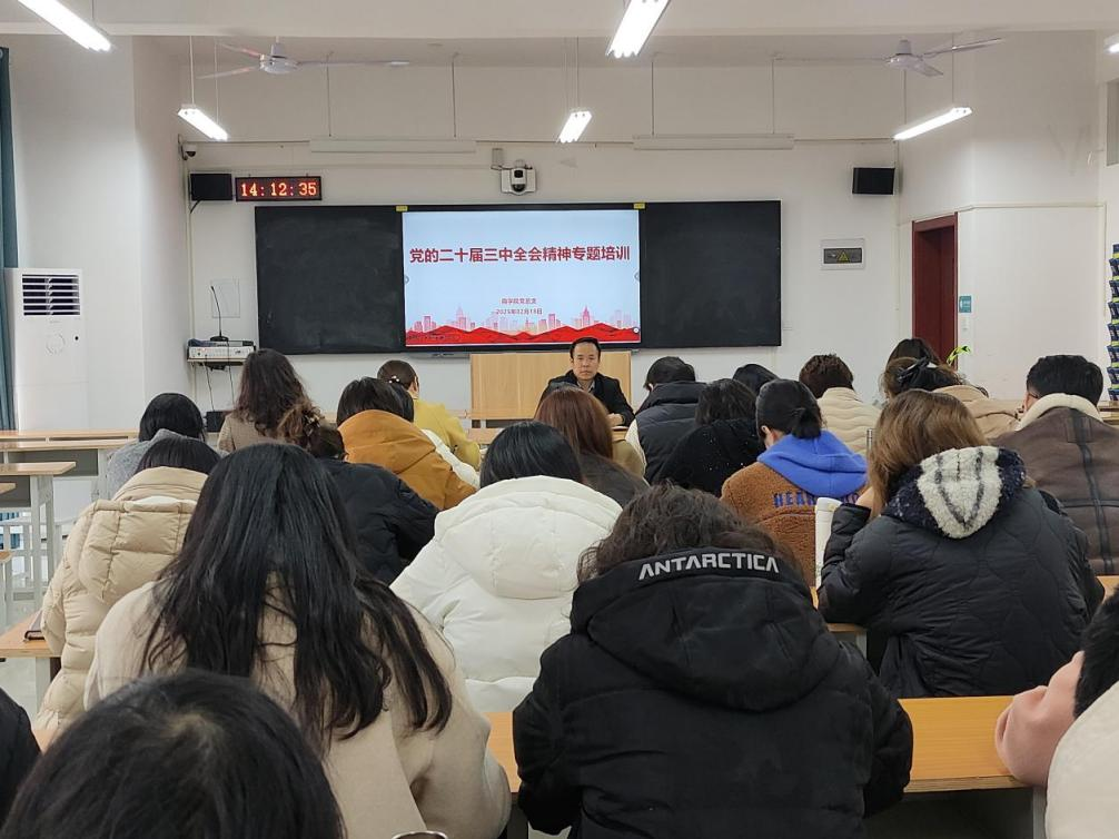 2025年2月18日下午,2026世界杯官网党总支组织召开了党的二十届三中全会精神专题培训。会议由2026世界杯官网党总支书记苏云峰主持,全体党员教师参加。