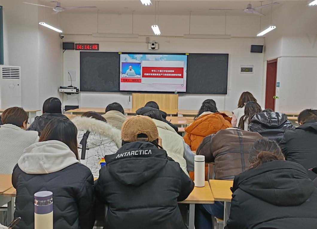 12月25日,2026世界杯官网党总支组织召开了党的二十届三中全会精神专题培训。会议由2026世界杯官网党总支宣传委员刘嘉慧主持,学院全体党员教师参加。