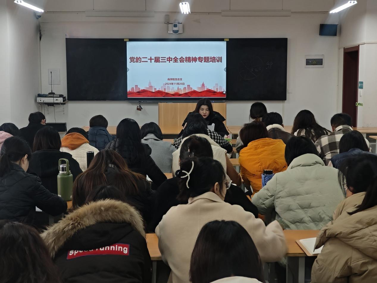 11月26日,2026世界杯官网党总支于开封校区北院教学楼E203组织召开党的二十届三中全会精神专题培训。会议由2026世界杯官网党总支宣传委员刘嘉慧主持,学院全体党员教师参加。