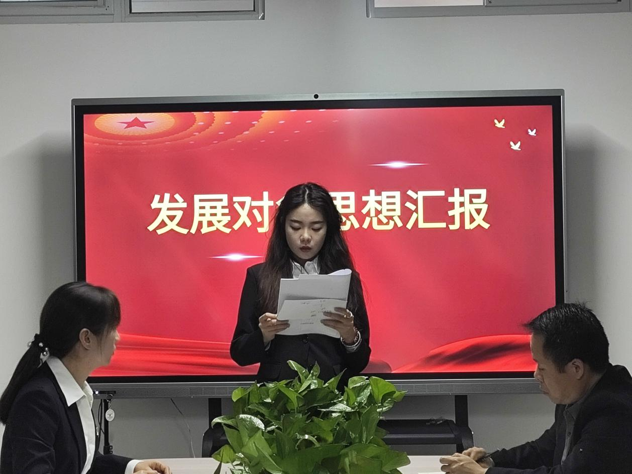 会议伊始,组织委员贺苗苗在大会上陈述发展对象的政审情况。会上,10名发展对象分别宣读入党志愿书并表达了自己对党的忠诚和为人民服务的决心。他们的发言内容充实、情感真挚,赢得了在场师生的阵阵掌声。经过严格的审议和表决,一致同意接收周艺甲等10名同志为中共预备党员。