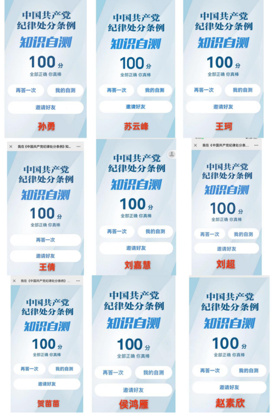 此次知识测试紧紧围绕修订后的《中国共产党纪律处分条例》内容,能够全方位检验党员教师对党纪学习教育内容的掌握情况。全体党员教师态度端正,积极参与答题,所有教师均拿到满分的好成绩,充分展现了党纪学习教育的良好氛围。