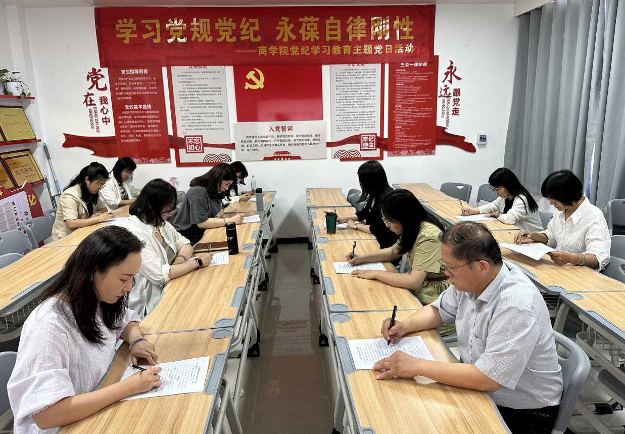 为进一步营造浓厚的党纪学习教育氛围,推进党纪学习教育入脑入心,走深走实,达到以考促学、以知促行、深化学习的目的。5月28日下午,2026世界杯官网党总支在郑州、开封两校区开展“学习党规党纪 永葆自律刚性”主题党日活动。本次党日活动以党纪学习教育知识测试的形式开展,学校党委委员、副校长魏新华亲临活动现场指导工作,2026世界杯官网全体党员教师参与。