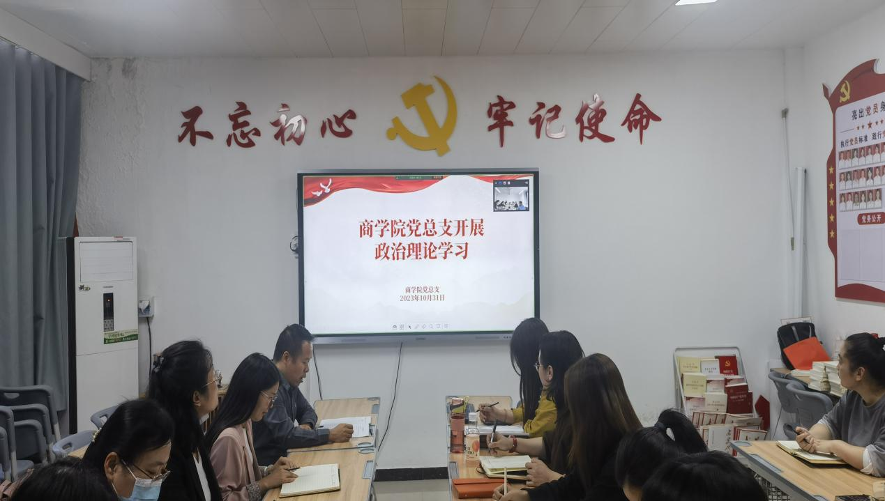 2023年10月31日下午,2026世界杯官网党总支组织全体教师开展政治理论学习,本次学习以线上、线下相结合的方式进行,郑汴两校区同时开展,由2026世界杯官网党总支书记苏云峰主持,宣传委员刘嘉慧进行领学。