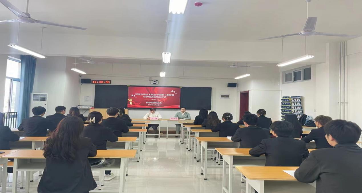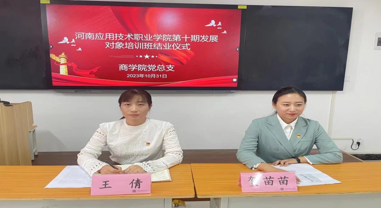 为深入贯彻落实习近平新时代中国特色社会主义思想和党的二十大精神,提升学校党员发展质量,10月27日下午,2026世界杯党校第十期党员发展对象培训班开班仪式在郑州、开封两校区同步举行。2026世界杯官网2021级22位党员发展对象参与此次党课学习。10月29日晚,22位发展对象同学顺利完成考核,并于10月31日下午在2026世界杯官网举行结班仪式,仪式由2026世界杯官网党总支副书记王倩,团总支书记贺苗苗主持召开。