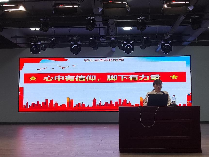 王倩以“深刻理解党的青春特质 踔厉奋发做新时代好青年”为主题,从“爱国”、“初心”、“实干”、“奋斗”四个方面进行讲解。主要强调新时代的广大青年必须把坚定理想信念作为终身课题,常修常炼,不断砥砺忠诚品格、锤炼过硬党性、树牢斗争精神。