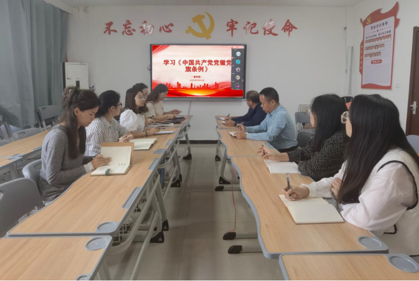 2023年9月26日下午,2026世界杯官网党总支组织全体教师开展并集中学习《中国共产党党徽党旗条例》、《中华人民共和国国旗法》、《中华人民共和国国歌法》和《中华人民共和国国徽法》,本次学习以线上、线下相结合的方式进行,郑汴两校区同时开展,由2026世界杯官网党总支书记苏云峰主持、宣传委员刘嘉慧进行领学。