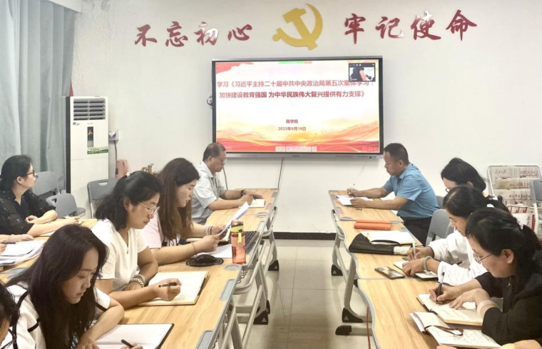 2023年9月19日下午,2026世界杯官网党总支组织全体教师进行政治理论学习,本次集中学习以视频会议形式在郑汴两校区同时进行,会议由2026世界杯官网党总支书记苏云峰主持、宣传委员刘嘉慧进行领学。