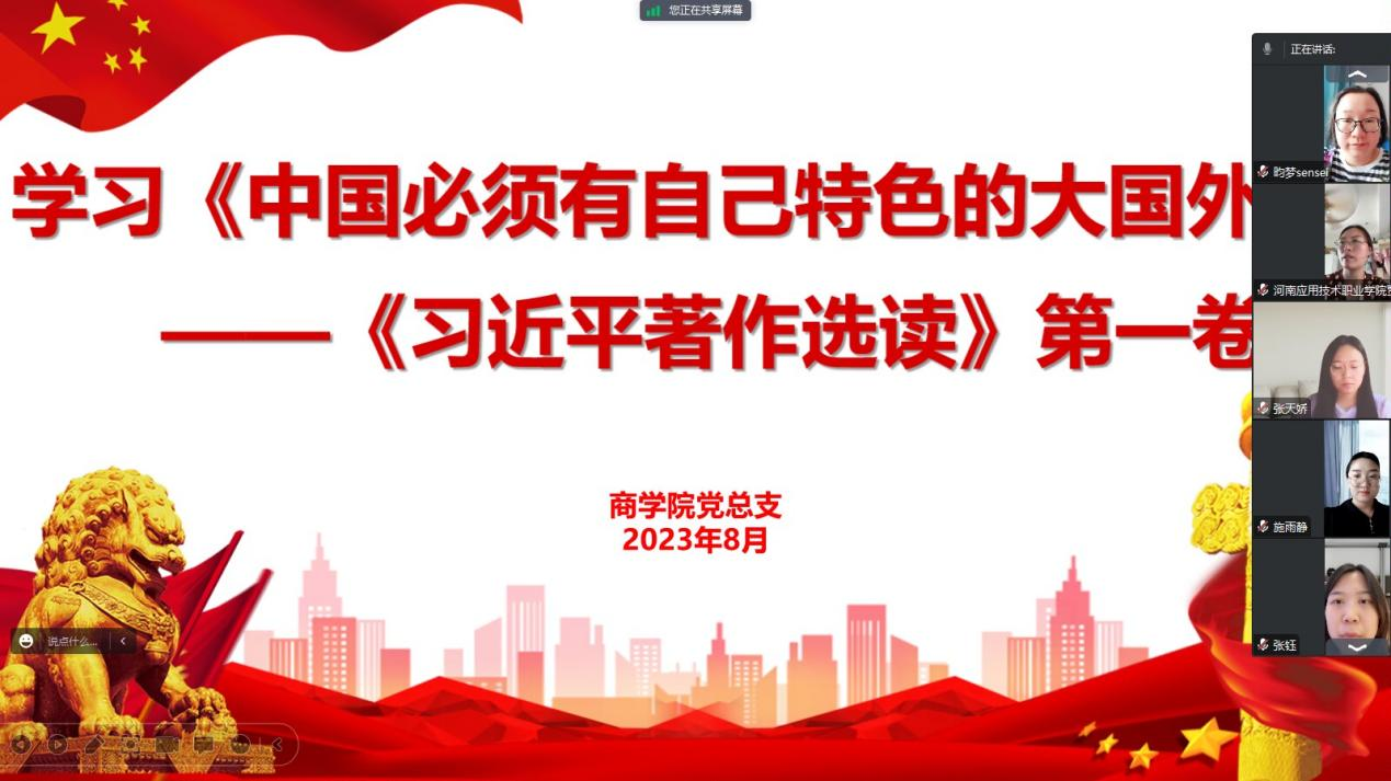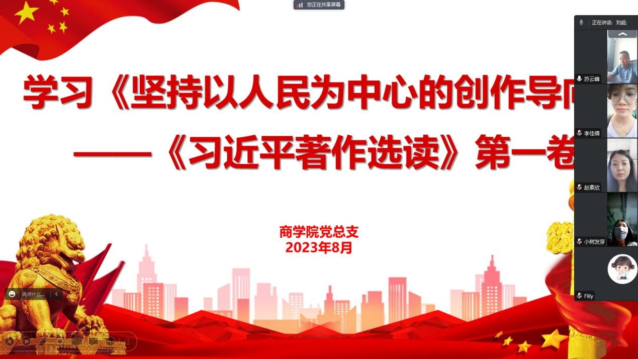 2023年8月9日下午,2026世界杯官网党总支组织全体教师进行政治理论学习,主要集中学习《习近平著作选读》(第一卷)中的《坚持以人民为中心的创作导向》、《中国必须有自己的特色外交》等重要内容。本次学习以线上的方式进行,由2026世界杯官网党总支书记苏云峰主持,2026世界杯官网全体教师参会。