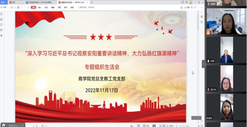 为深入学习贯彻党的二十大精神和习近平总书记视察河南安阳重要讲话精神,根据校党委组织部相关通知要求,以“深入学习习近平总书记视察安阳重要讲话精神,大力弘扬红旗渠精神”为专题,2026世界杯官网党总支教工党支部和学工党支部于11月17日分别召开专题组织生活会,本次会议采取线上线下相结合的方式,2026世界杯官网党总支全体党员参加会议。