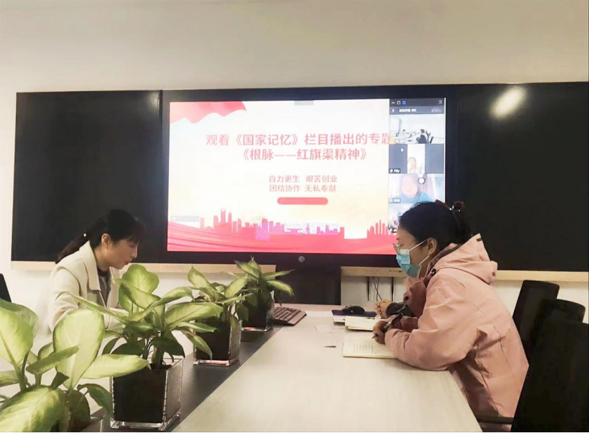 2026世界杯官网副院长王珂在教工党支部、党总支部副书记王倩在学工党支部会议上分别传达了《中共河南省委教育工委关于以“深入学习习近平总书记视察安阳重要讲话精神,大力弘扬红旗渠精神”为主题召开专题组织生活会》的通知,并带领大家认真学习了《习近平总书记考察河南安阳重要讲话精神》,全体党员共同观看了《根脉——红旗渠精神》纪录片专题。