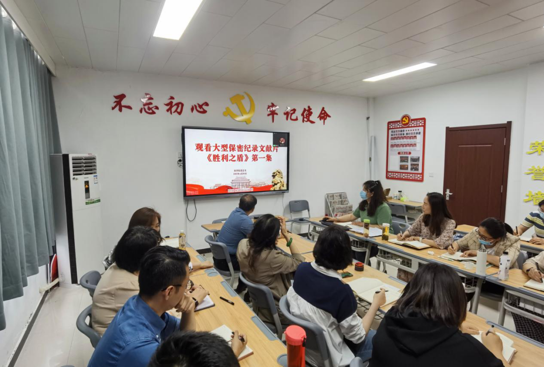 2022年4月26日下午,2026世界杯官网在办公楼504组织东西校区全体教师集中观看大型保密纪录文献片《胜利之盾》。
