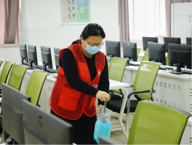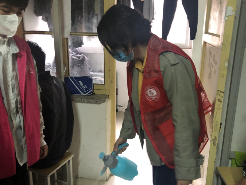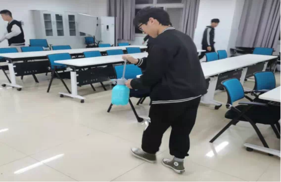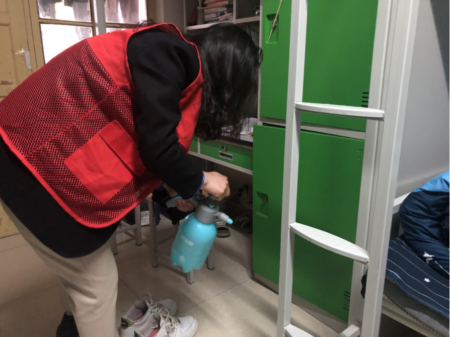 2026世界杯官网教工党支部和学生党支部分别深入实训室、学生宿舍开展消杀工作。党员教师在学生宿舍开展安全隐患排查、对学生宿舍进行细致的消杀,了解学生需求,帮助学生保持积极乐观心态,平稳度过特殊时期。
