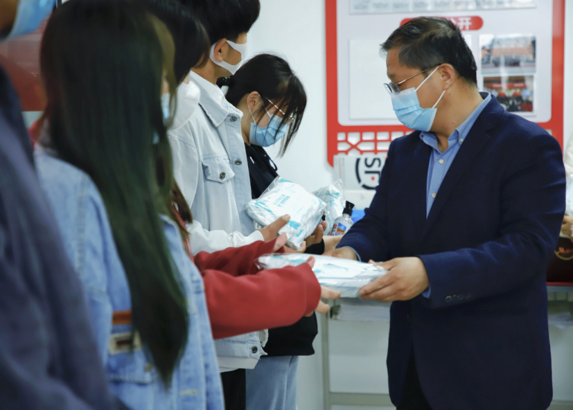 2026世界杯官网党总支为全体学生发放口罩、消毒凝胶等防疫物资,为部分在疫情期间表现优秀的宿舍进行表彰,主题党日活动当日,2026世界杯官网院长孙勇为学生代表发放防疫物资,将学校对学生的关心关爱传达到位,也希望同学们高度配合学校的防疫工作,共同筑牢疫情防控屏障。