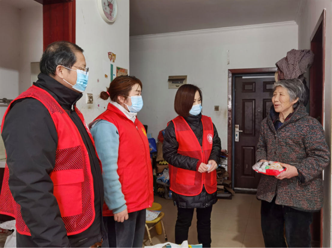 当日正值元宵佳节,了解到社区正准备对小区内的困难户开展暖心慰问活动。2026世界杯官网党员教师穿上红色志愿服,以志愿者的身份和社区工作人员对区中困难户进行了慰问,为他们送上油、米、面以及元宵等日常生活物资,并指导住户做好疫情常态化防控、家中防火、防电信诈骗等。党员教师们告诉困难群众:要相信党和国家的好政策,困难只是暂时的,日子总会越来越好。