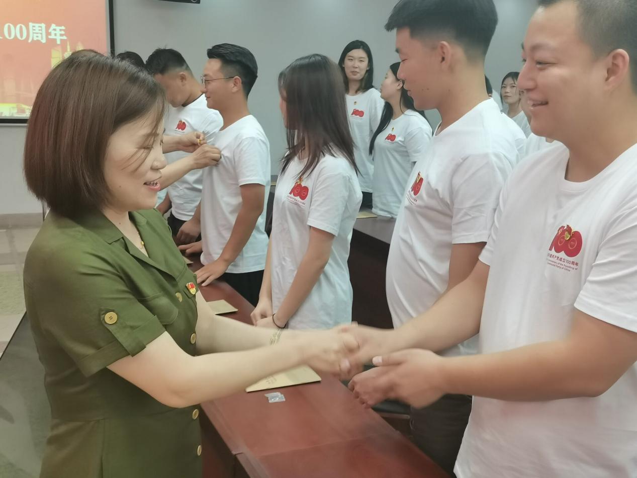 19级同学表演了党史学习教育“读红色家书”优秀作品。全体党员齐唱《没有共产党就没有新中国》,用嘹亮的歌声共忆一段峥嵘岁月,感恩党的伟大。新党员纷纷表示入党宣誓作为自己政治生涯中神圣而庄严的时刻,将进一步坚定理想信念,以青春知我、奋斗之我为祖国的繁荣富强奉献智慧和力量。