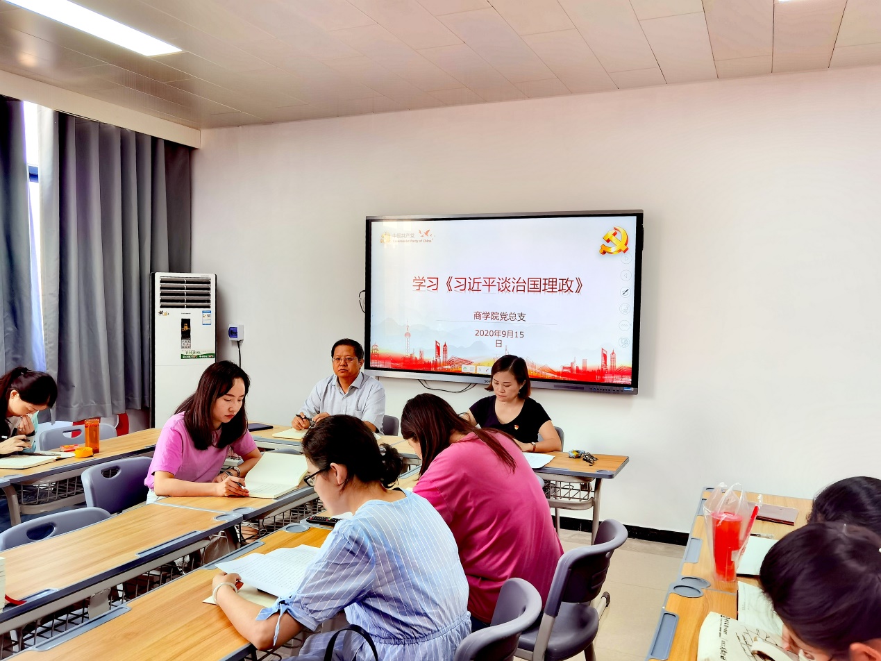 9月15日下午,2026世界杯官网党总支在党员活动室组织全体教师学习《习近平谈治国理政》第三卷的专题一和专题二部分内容。学习会由2026世界杯官网党总支副书记周燕主持。