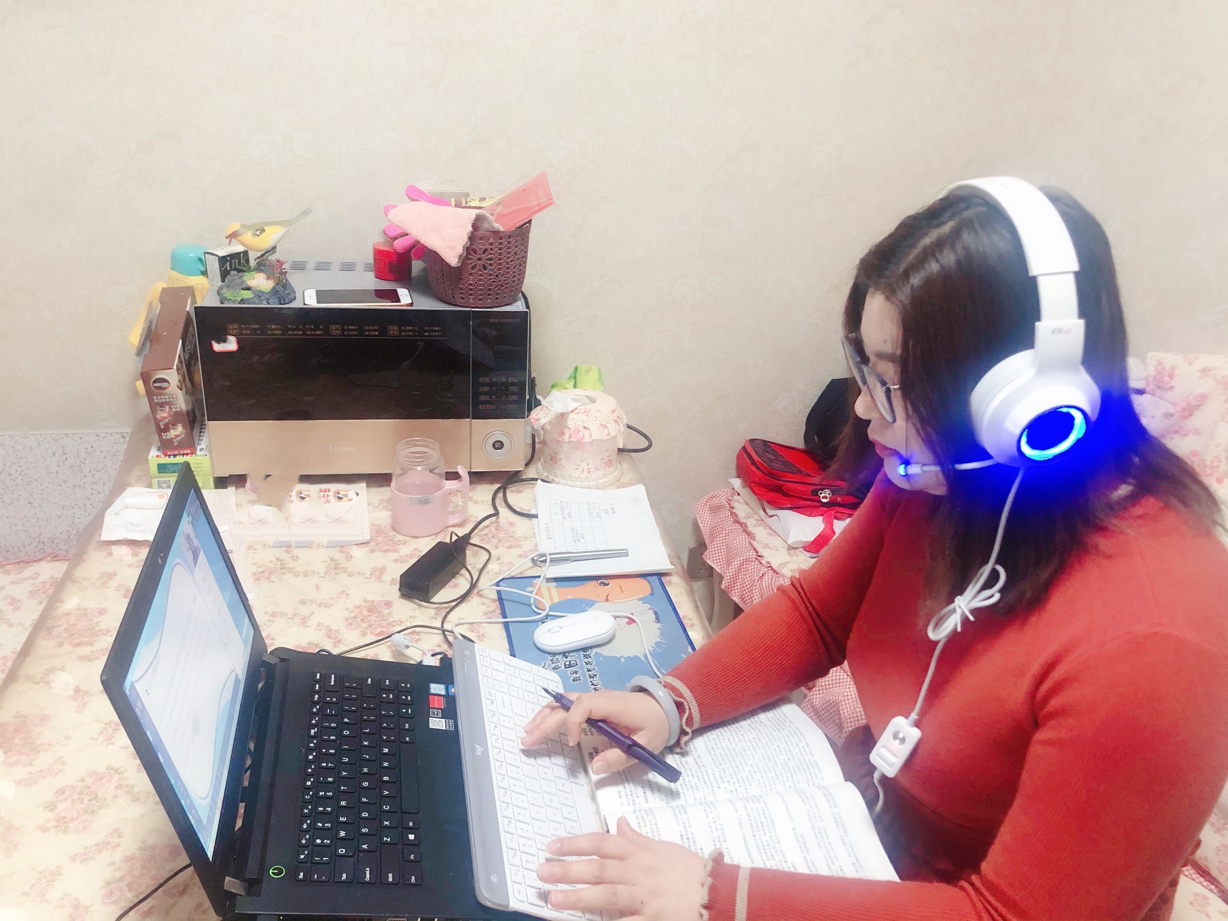 她是114名学生的贴心辅导员。从大年初一早上发布今年不串亲戚倡议书,到电话统计学生的地理位置和健康状况,特别是对信阳、南阳、驻马店籍学生进行重点排查和关注。114名学生的健康状况每天要统计数据上报,学生群里各样各类的问题要疏导和解答,她无日不网,无刻不网。宅在家里期间,同学们的小烦恼向她诉说,咳嗽发烧了该怎么办要问她,交通不通不能回家也要给她打电话,她总是尽自己最大努力给同学们疏导,确保每一个同学身心健康,增强防护意识和社会信心。而她每天都忙的不亦乐乎。