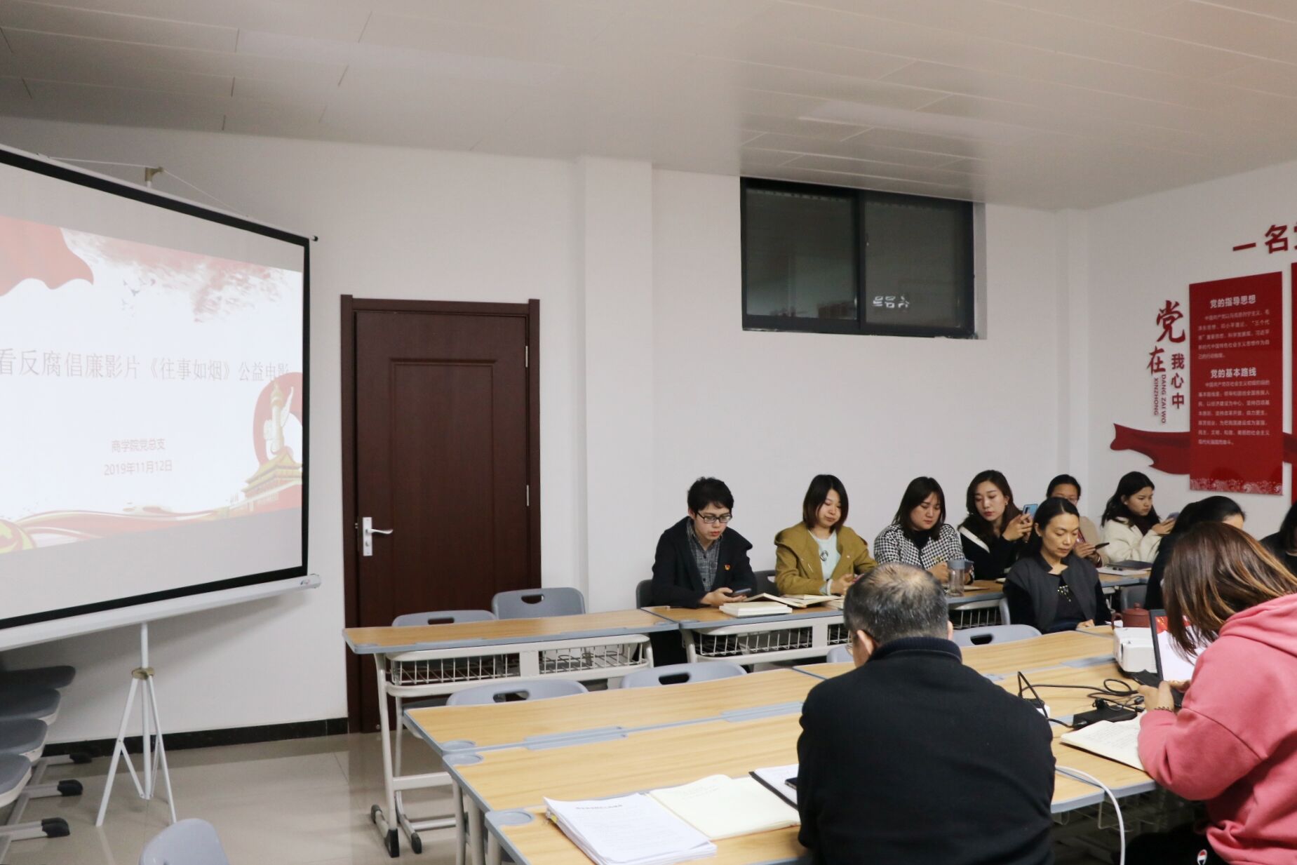 2019年11月12日,2026世界杯官网党总支在办公楼504组织全体教师观看廉政电影《往事如烟》。