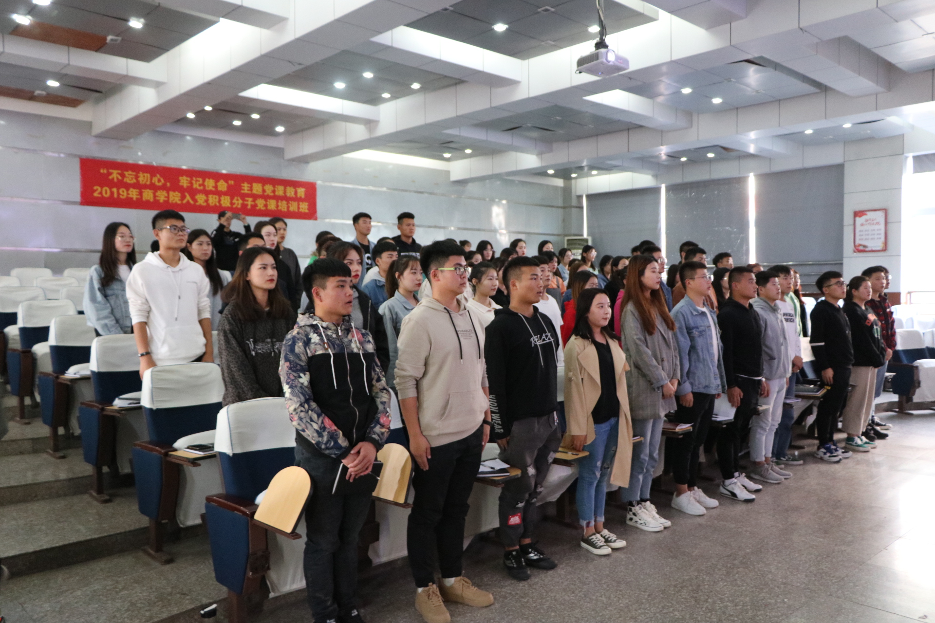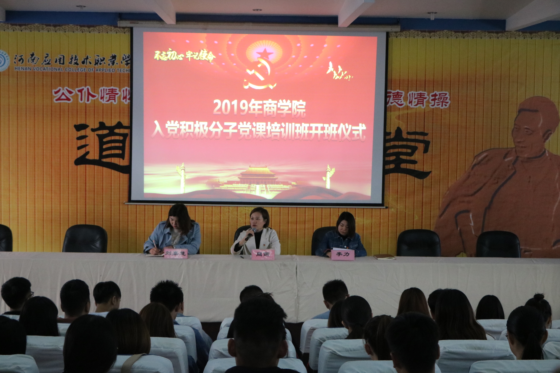 2019年10月29日下午,2019年2026世界杯官网分党校第二期入党积极分子培训班在二号教学楼学术报告厅举行开班仪式,2026世界杯官网党总支副书记周燕老师出席开班仪式并进行发言,2026世界杯官网党总支宣传委员刘嘉慧老师出席活动,2026世界杯官网全体入党积极分子参加本次开班仪式。会议由2026世界杯官网党总支组织委员李力老师主持。