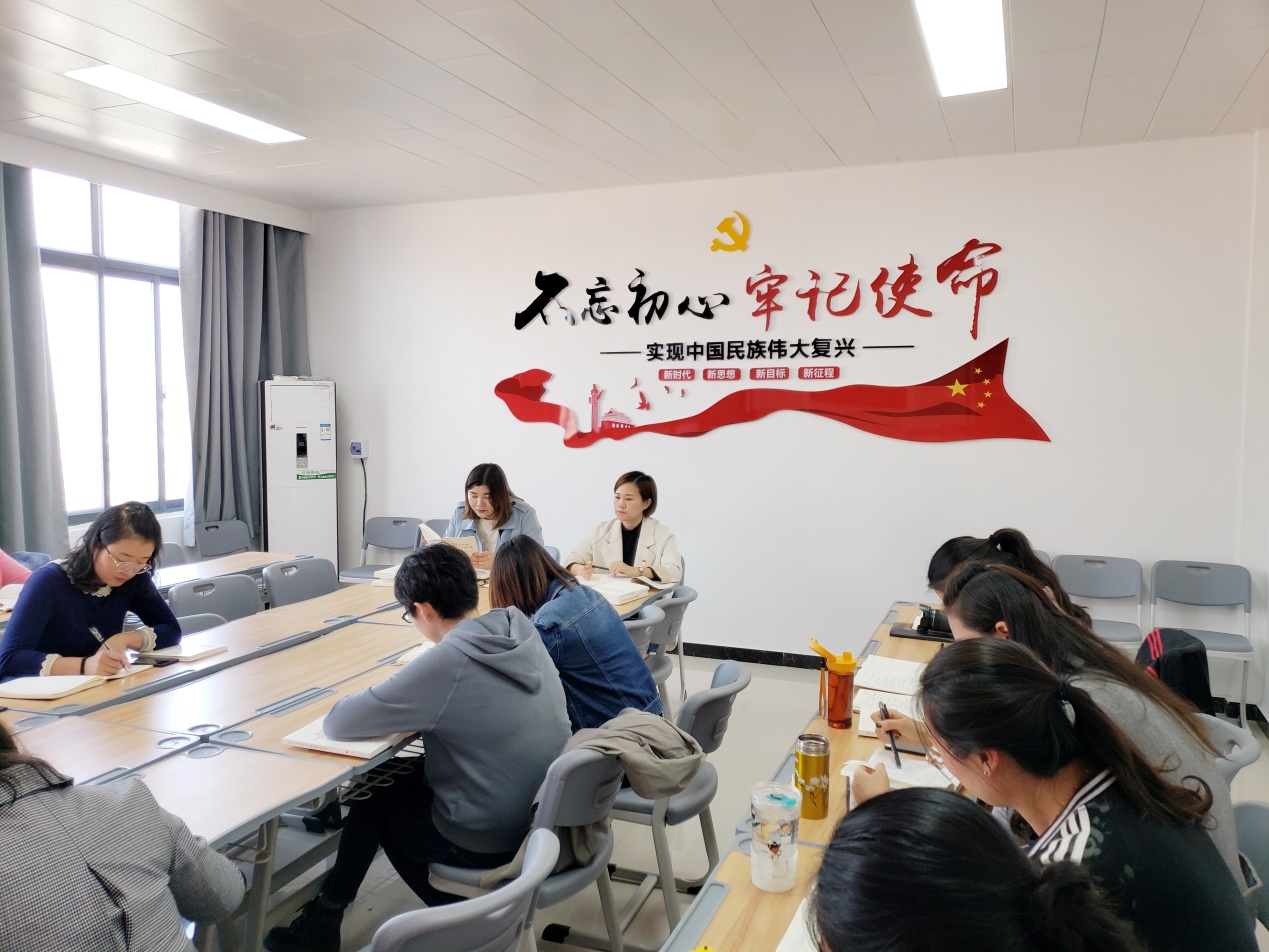 “师者,人之楷模也。”毛泽东主席曾给教师这个职业的定义是“阳光下最光辉的职业”。在学校“不忘初心、牢记使命”主题教育进行时,2019年10月29日下午,2026世界杯官网党总支组织全体教师在办公楼504开展专题理论学习——“守初心,担使命,找差距,抓落实”。学习由2026世界杯官网党总支副书记周燕老师主持。