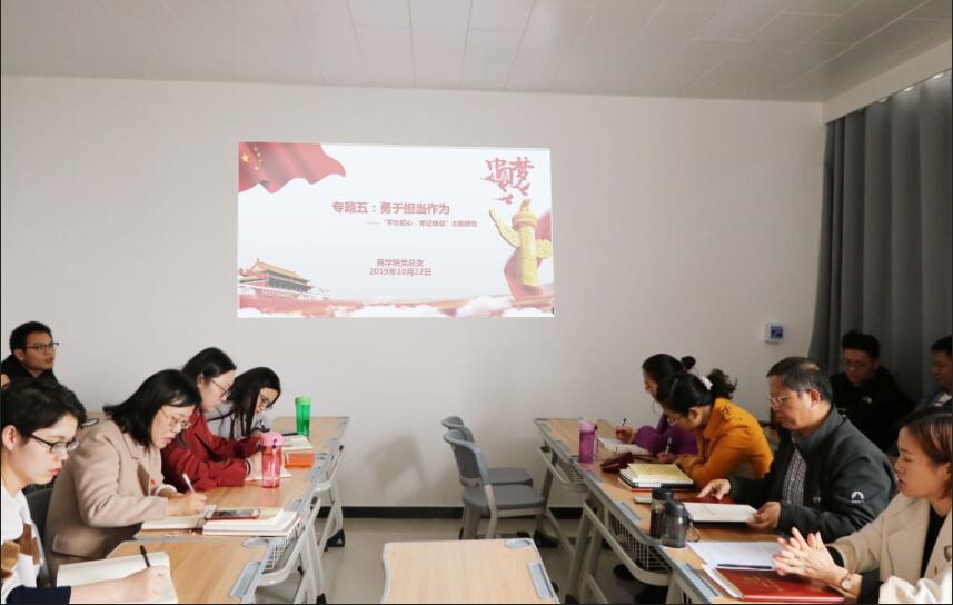 根据学校“不忘初心、牢记使命”主题教育工作安排,2019年10月23日,2026世界杯官网党总支在办公楼505党员活动室组织开展了“不忘初心、牢记使命”主题教育勇于担当作为专题集中学习,全体党员教师参加学习。2026世界杯官网党总支副书记周燕主持会议。