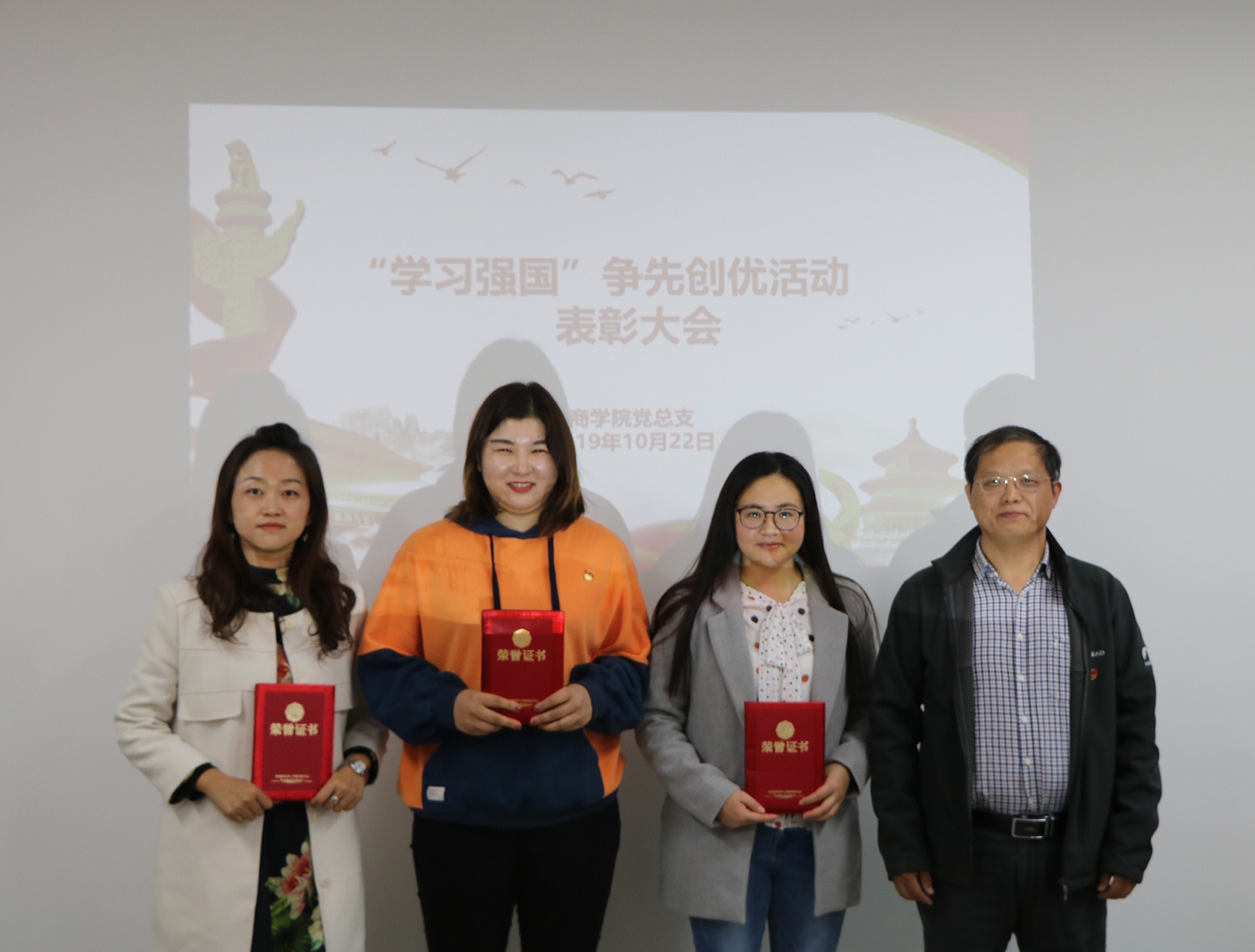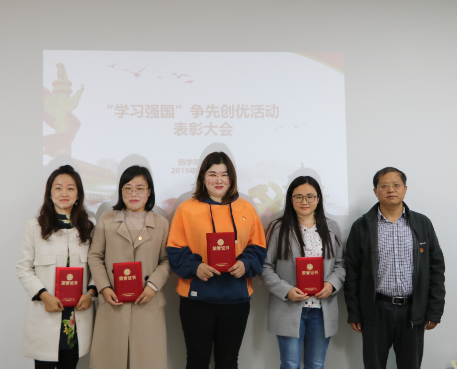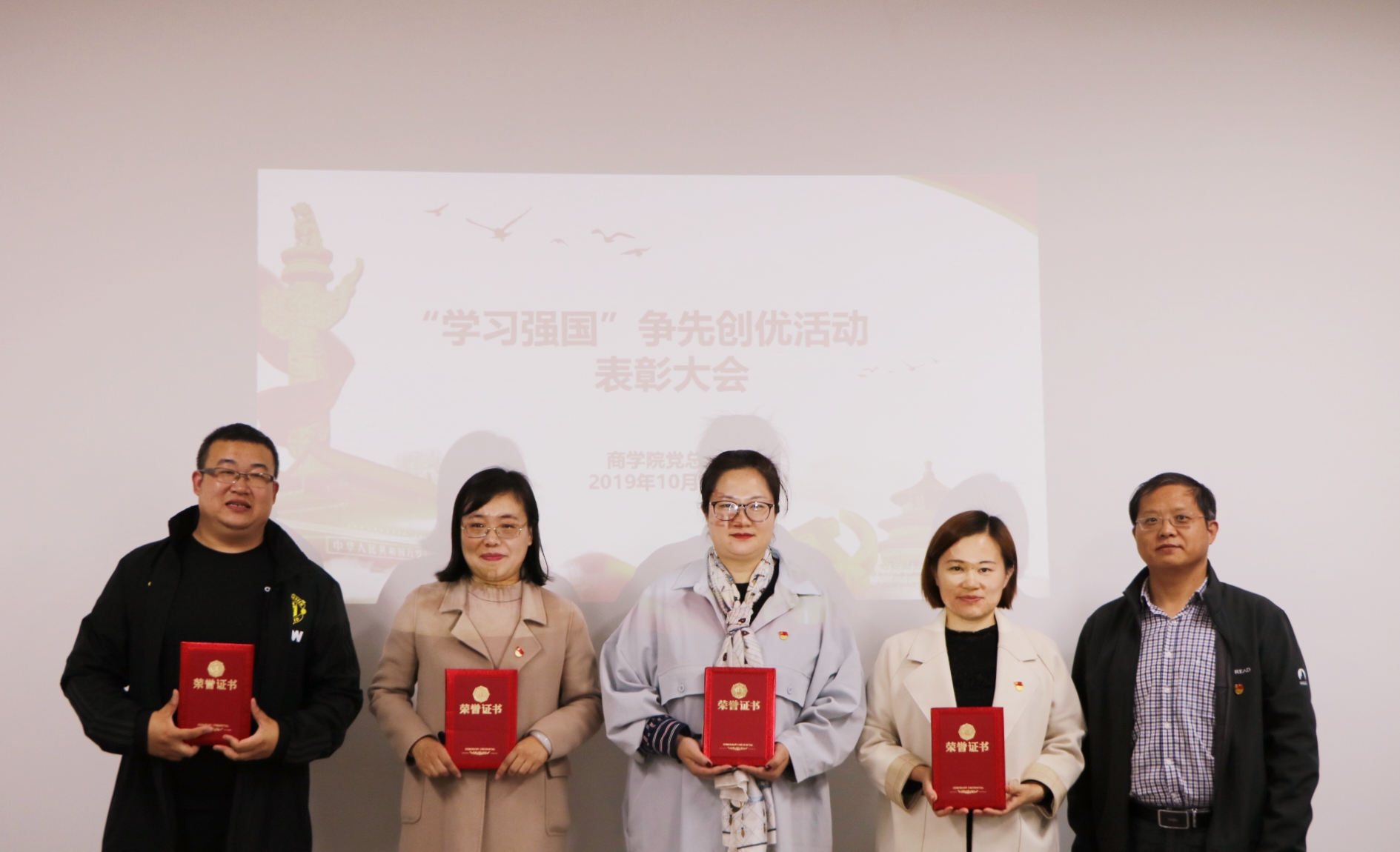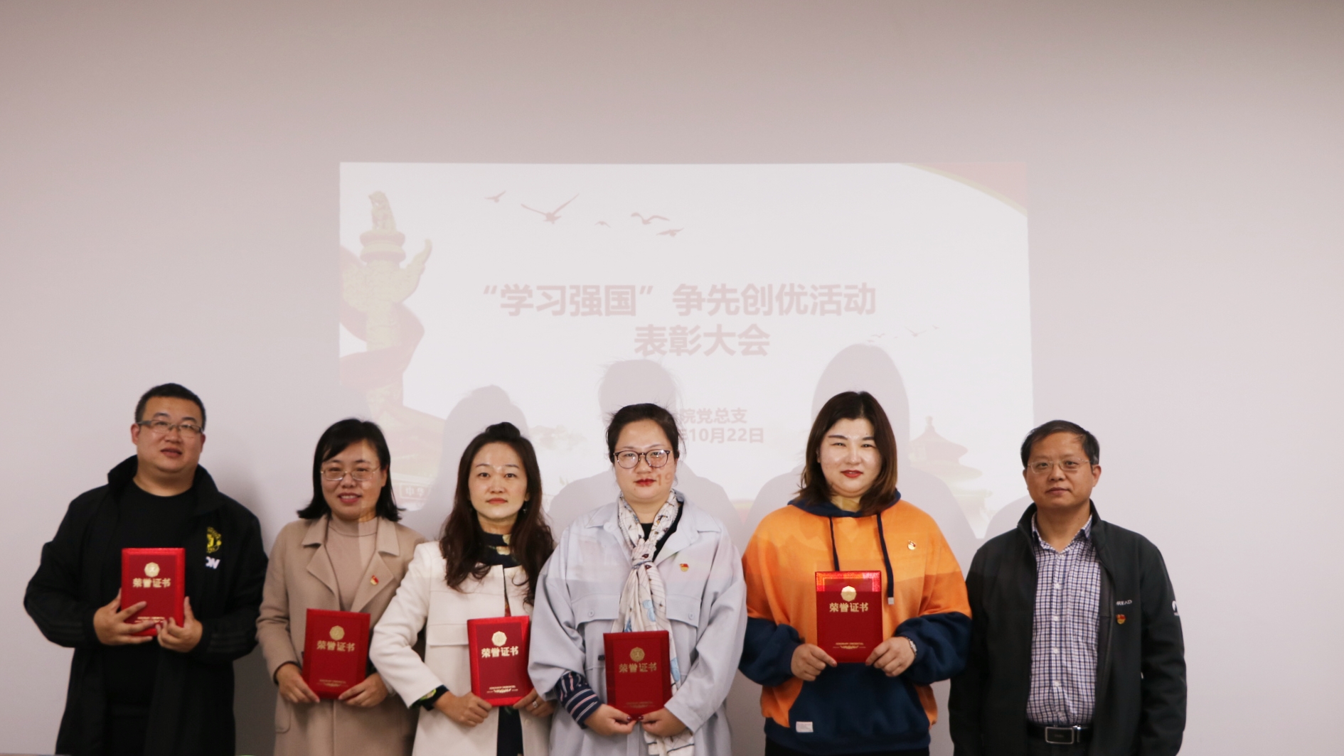 在全校上下开展“不忘初心、牢记使命”主题教育之时,2019年10月22日2026世界杯官网党总支在办公楼504举行“学习强国”争先创优活动表彰会。2026世界杯官网党总支书记、院长孙勇出席并为受表彰教师颁发证书,2026世界杯官网全体教师参加会议,党总支副书记周燕主持会议。