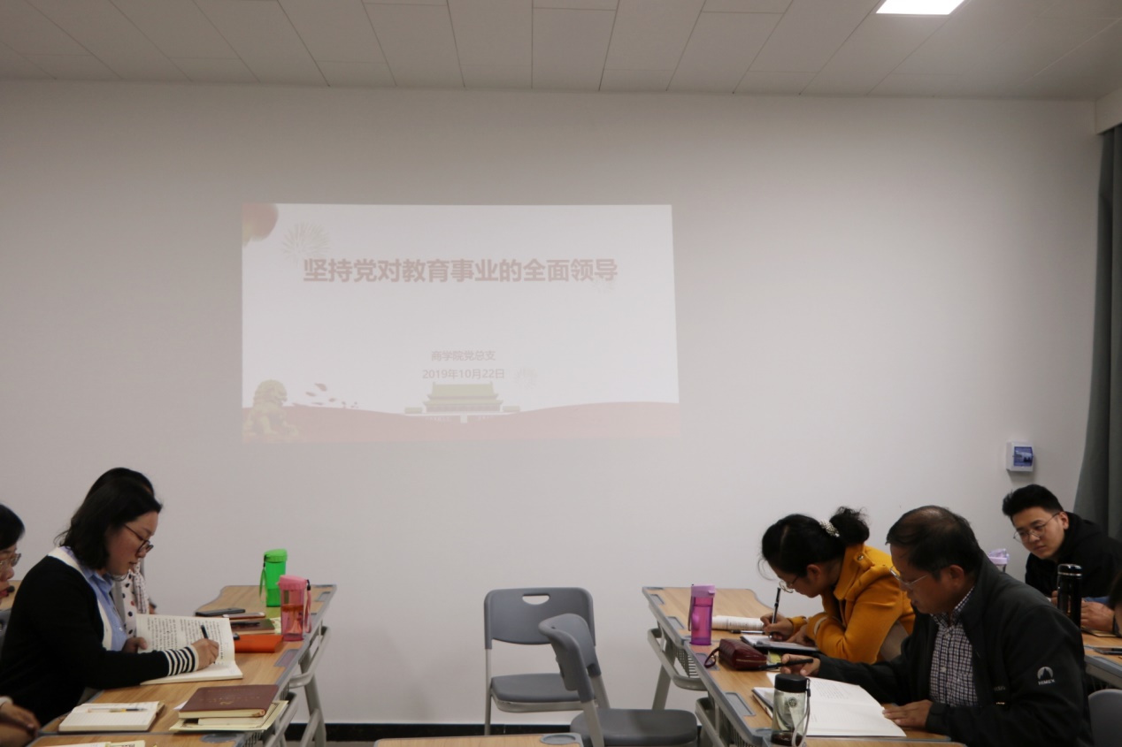 “党政军民学,东西南北中,党是领导一切的”。加强党的领导是做好教育工作的根本保证。为了学习贯彻习近平总书记关于教育相关指示精神,2019年10月22日,2026世界杯官网全体专兼职教师一起聆听了党总支书记孙勇院长的主题党课——“坚持党对教育事业的全面领导”。