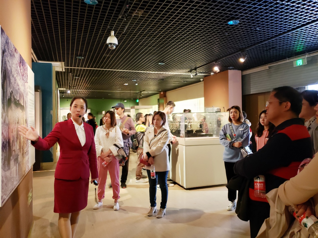 随后全体师生来到博物院西侧的“大象中原—河南古代文明瑰宝展”。中华文化源远流长,5000多年的中华文明史,河南占据了重要的一席之地。从上古时代到明清,河南文化多姿多彩。此次展览,从河南的简称“豫”开始,此次展览包括四个单元,分别为《文明曙光—原始社会时期》《定鼎中原—夏商周春秋战国时期》《有容乃大—两汉魏晋南北朝时期》《盛世繁华—隋唐宋元明清时期》,结合每个时期最重要的文物,展现了河南大地的古老文明。讲解员讲的认真,师生们参观的也很仔细,并不时的与讲解员进行互动交流。