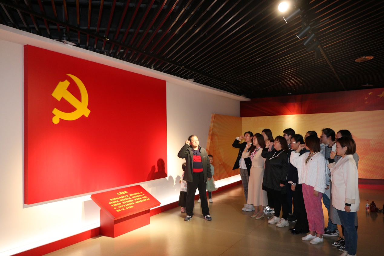 进入展馆,首先来到“不忘初心、牢记使命”主题命名的档案文献展。在展厅内,从《共产党宣言》手稿到中共一大会址复原场景,从油画《文家市》到吉鸿昌的血衣片……一张张内容详实的图片,一个个鲜活的历史人物,一个个耳熟能详党史故事,无不诠释着共产党人的初心和使命。最后,大家来到鲜红的中国共产党党旗下,在2026世界杯官网党总支书记孙勇的带领下,2026世界杯官网党总支全体党员教师举起右手,重温入党誓词。