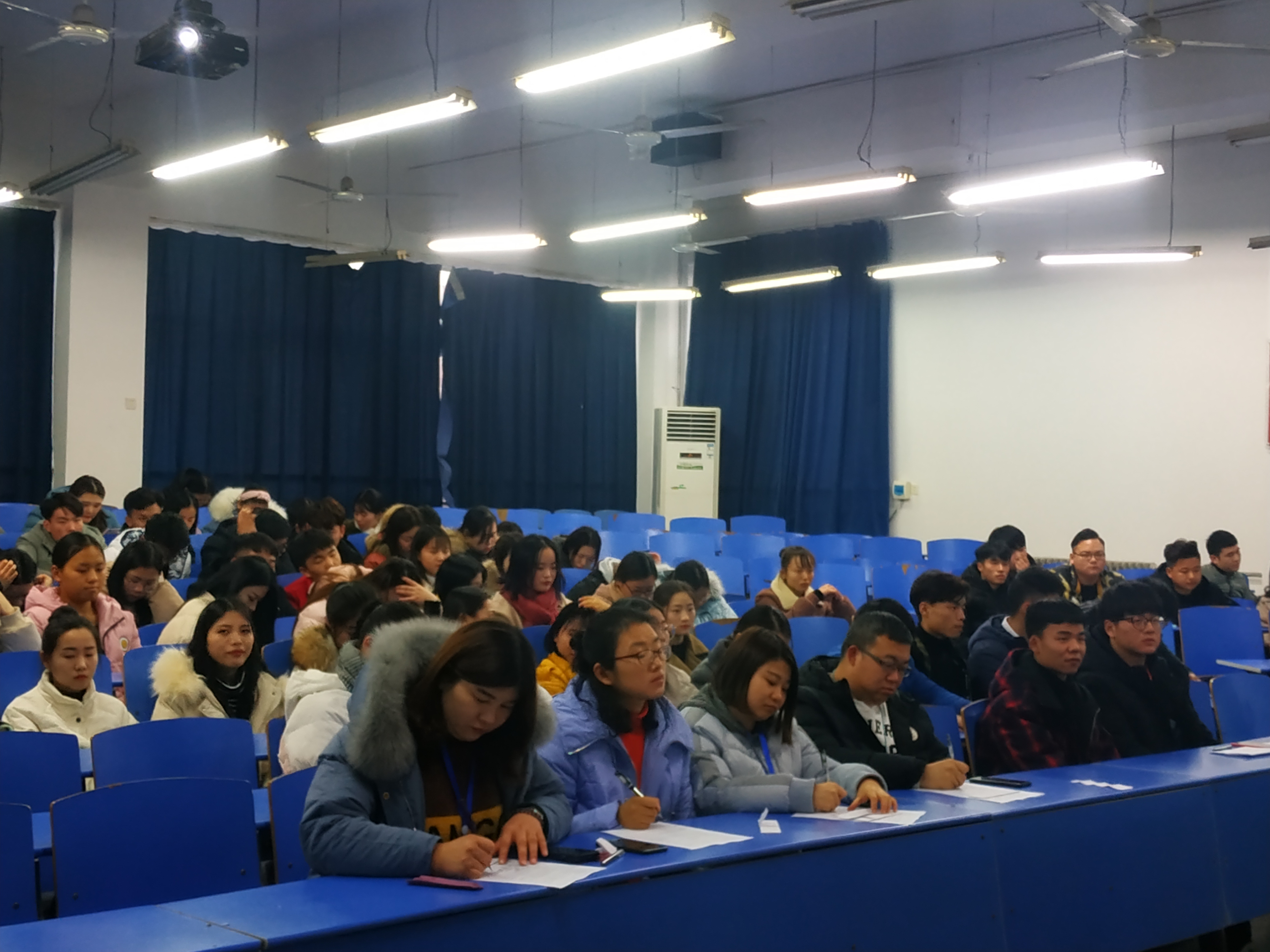 2018年12月27日在b201开展的《感受红色情怀,传承中国精神》演讲比赛,由商贸学院李力老师、刘嘉慧老师、岳晓娜老师、朱海老师担任此次大赛评委,商贸学院全体入党积极分子参加活动。