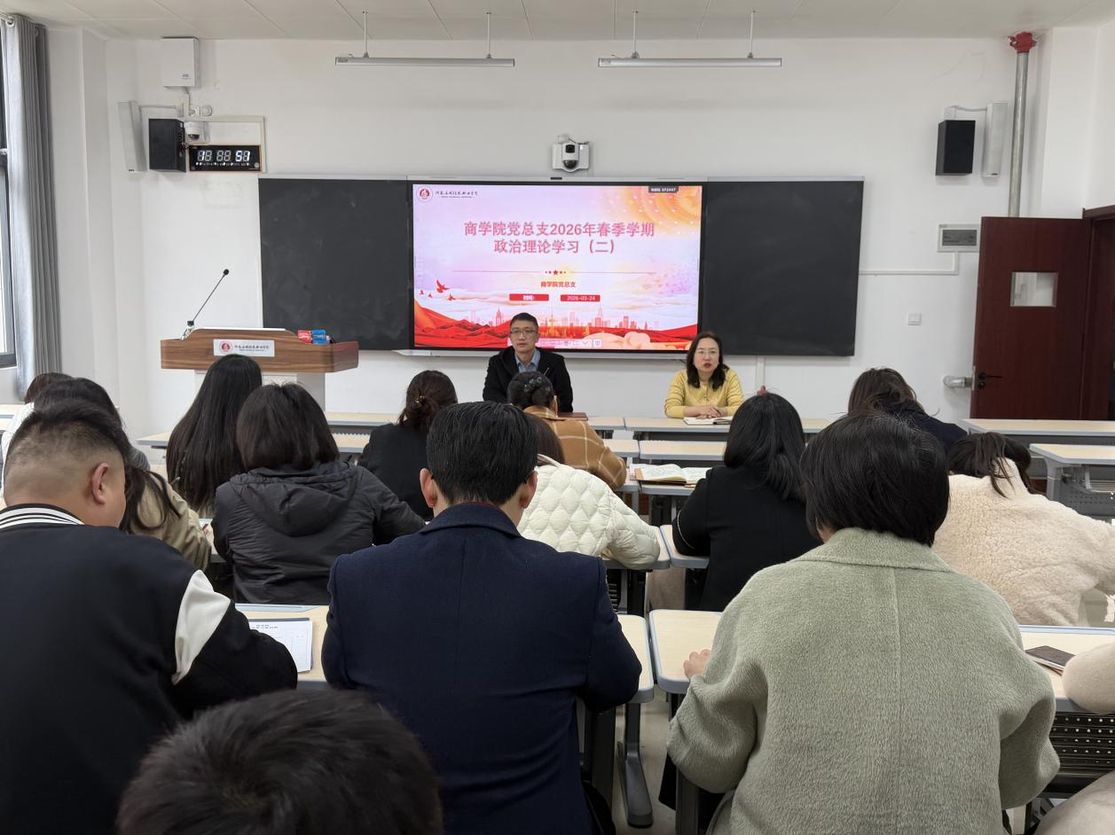 2026年3月24日,2026世界杯官网党总支在B109教室召开政治理论学习会议。会议由2026世界杯官网党总支书记荆伟科主持,院长王珂、副院长刘嘉慧及全体教师参加会议。