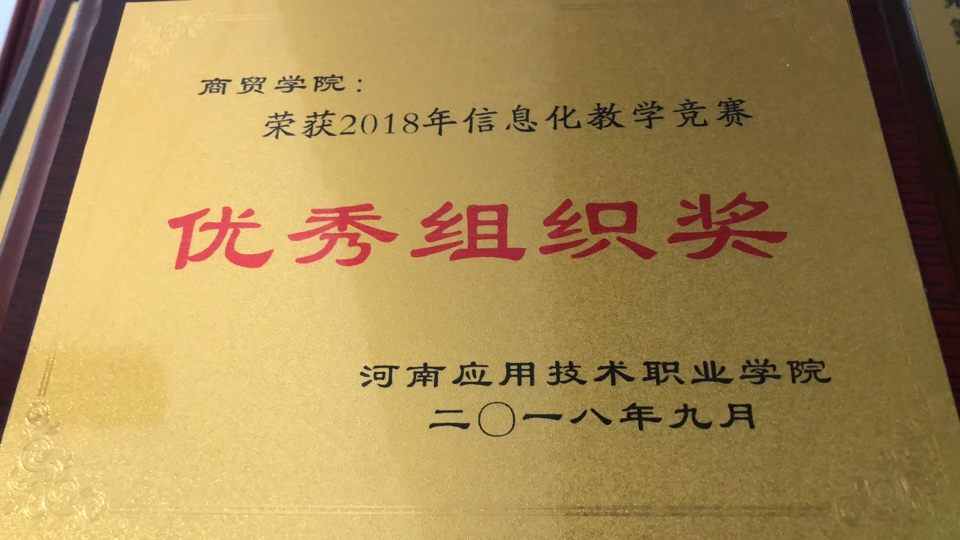 商贸学院提交作品质量高、数量多,荣获优秀组织奖。其中王珂、乔晓娜、周扬杨老师合作的《为配送中心选址》荣获“信息化教学设计”赛项一等奖,吴昀、王珂、孙勇老师合作的《电商伴我行》荣获“信息化课堂”赛项一等奖;刘傲宇老师完成的《仓储作业管理》,范丽丽、侯鸿雁、刘嘉慧老师合作的《决策管理的应用》两个作品荣获“信息化教学设计”赛项二等奖;范佳森、刘傲宇老师合作的《市场定位》,刘嘉慧、范佳森、侯鸿雁老师合作的《消费者争议的解决》分别荣获“微课”和“信息化课堂”赛项三等奖。