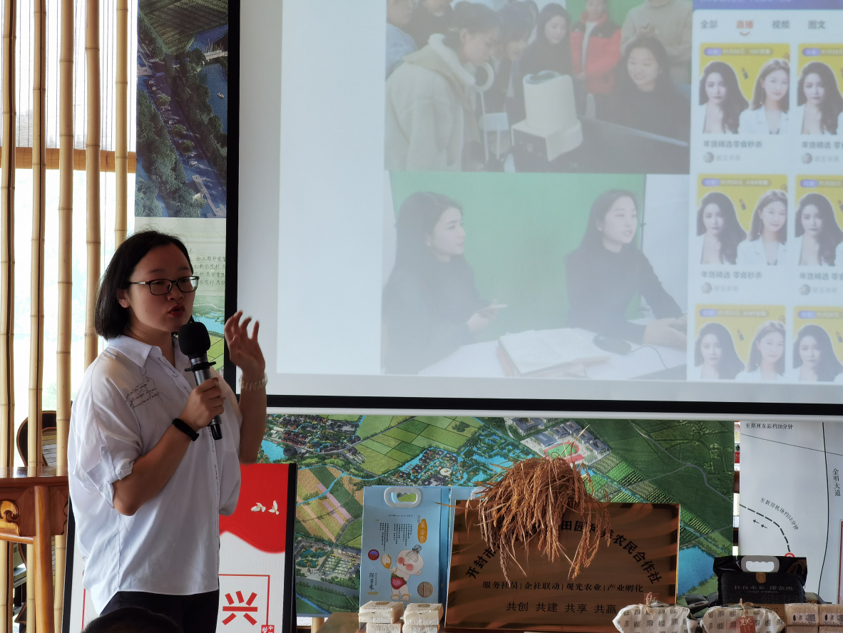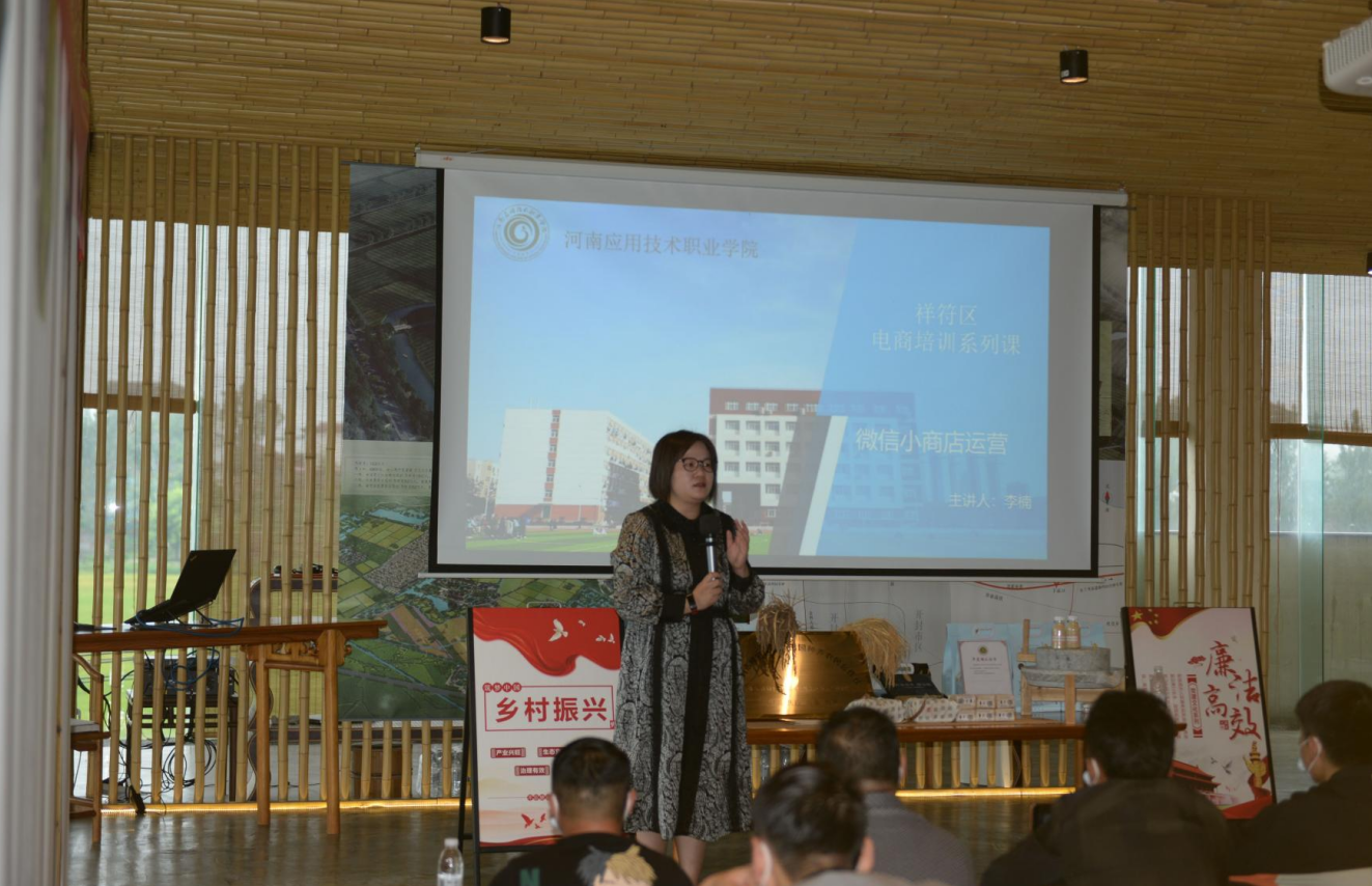 本次培训是受开封市祥符区商务局邀请,由2026世界杯官网李楠、吴昀、朱海三位老师主讲,电子商务工作室的曹颖、段笑迎、于秋东三位同学作为技术助教开展的一次旨在提升乡村电商人才素养的培训。李楠老师从微信小商店、爆款文案两个方面讲解了新时代农村电商如何通过社交平台实现流量增长;吴昀老师讲解了如何通过短视频+直播的电商运营模式发展乡村旅游和农产品产业;朱海老师带领学员现场实操短视频拍摄和剪辑;曹颖、段笑迎、于秋东同学现场展示了一场“直播带货真人秀”,娴熟的直播技术在短短30分钟的时间,引流一千多人围观。