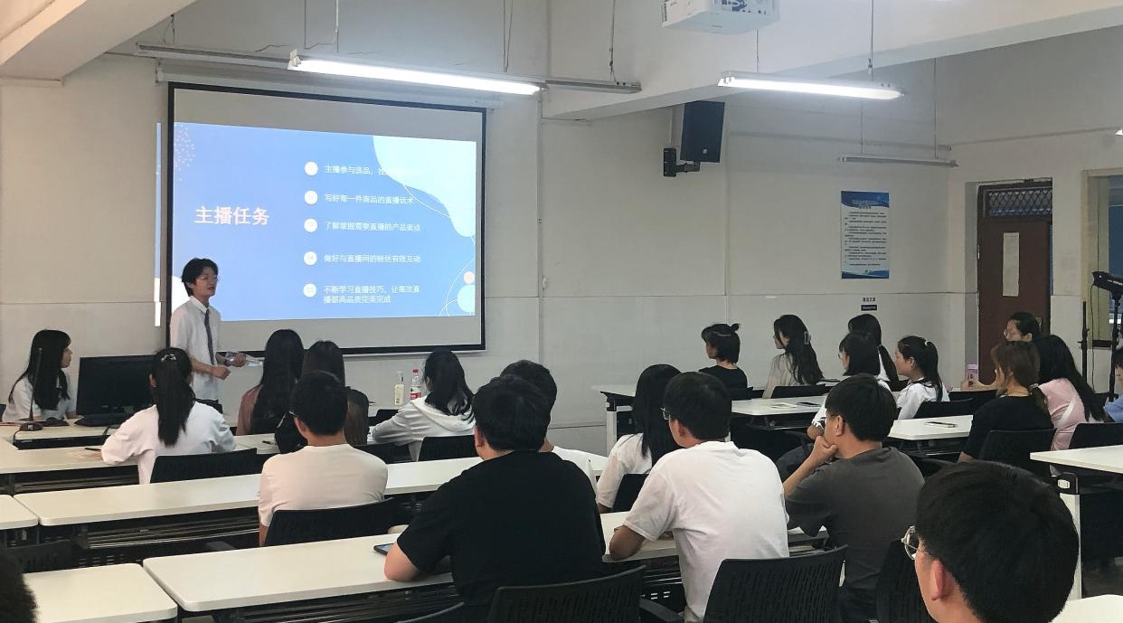 为满足企业对直播人才的需求,提供精准人才服务,多形式、多渠道探索电商主播人才培训模式,提升主播销售专业素养,壮大电商直播人才队伍,2026世界杯官网电商工作室于5月27日下午在E602开展了电商直播培训。本次活动邀请了来自海一云商的优秀老师,他给同学们进行了一场“如何成为一位优秀主播”的主题培训,2026世界杯官网网络营销、电子商务等专业的同学参加了培训。