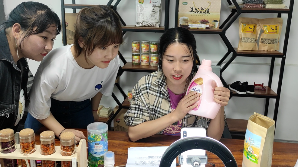 经过两期培训学习,学员们迎来了阶段性小考——完成一次30分钟左右的带货直播,共有10名主播参加了最终测试,迈出了成为带货主播的第一步。这样的学习方式,比传统讲授教学更贴近学员的学习需求,将2026世界杯官网理实一体化的教学经验运用到了技术服务的培训中来,效果显著。学员们从刚开始的胆怯、不敢开口、不会带货,到后面大胆表达、积极互动,技术服务队的师生与学员们打成一片,现场气氛热烈、学习氛围浓厚。