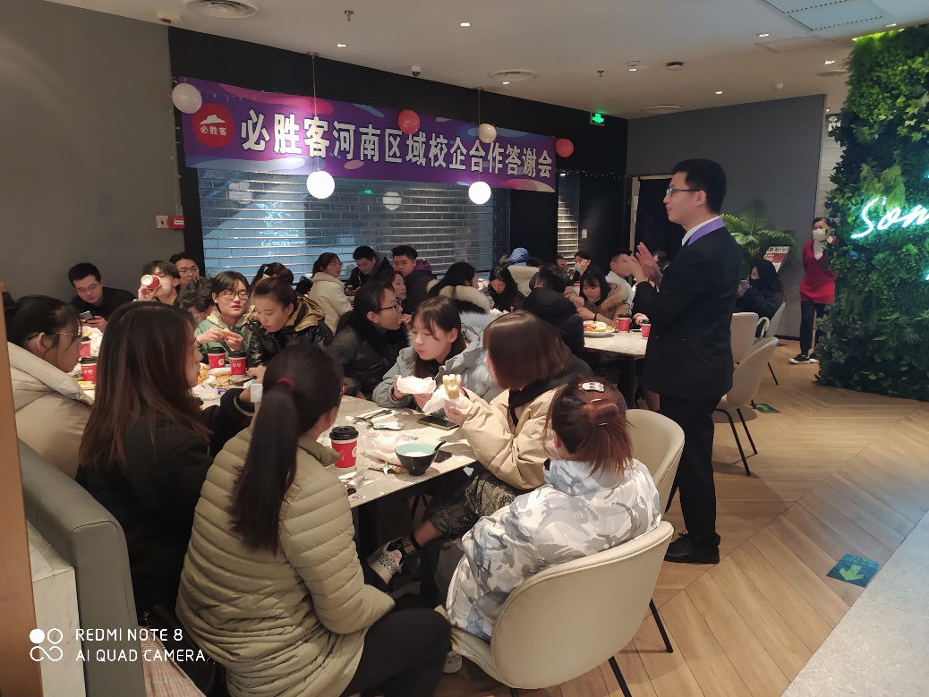 为促进校、企、学三方的交流与沟通,近日,2026世界杯官网在必胜客公园茂门店举办校企合作答谢会。2026世界杯官网连锁专业负责人兼工学交替指导老师侯鸿雁,必胜客区域经理靖宇洋,公园茂店长丁国方出席答谢会。2026世界杯官网连锁19级工学交替同学参加答谢会。
