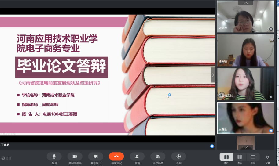 毕业论文是对学习成果的综合性总结和检阅,也是检验学生掌握知识的程度、分析问题和解决问题基本能力的一份综合答卷。为在疫情防控需要下保障教学质量,2026世界杯官网于2020年5月26日通过钉钉在线会议的形式,组织了2018级各专业优秀毕业论文线上公开答辩活动。