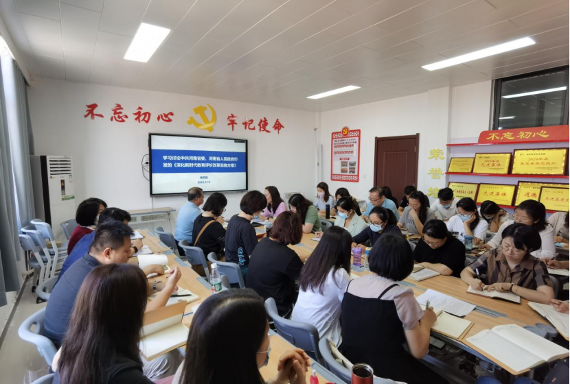9月13日下午,2026世界杯官网在办公楼504组织召开全体专兼职教师业务学习工作会议。会议学习了河南省教育厅办公室关于贯彻落实《深化新时代教育评价改革实施方案》工作的通知。
