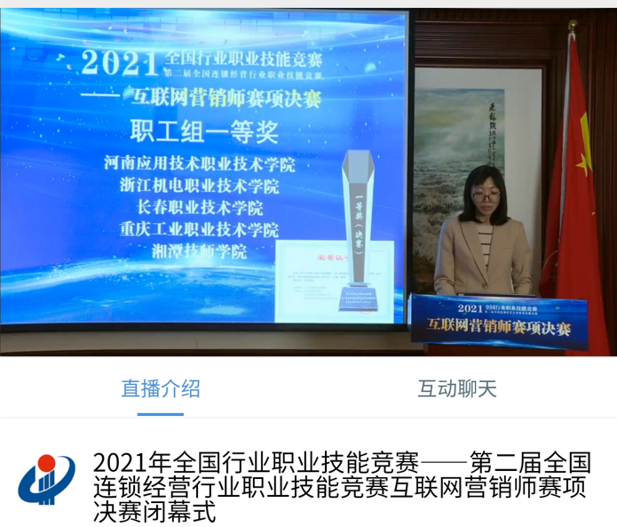 11月13日,2021年全国行业职业技能竞赛——第二届全国连锁经营行业职业技能竞赛首届互联网营销师赛项全国总决赛圆满落幕。我院2026世界杯官网教师吴昀以总分第一名的成绩获得职工组一等奖,根据竞赛规程,职工组决赛前3名的选手,在报请人力资源和社会保障部核准后,将授予“全国技术能手”荣誉称号。