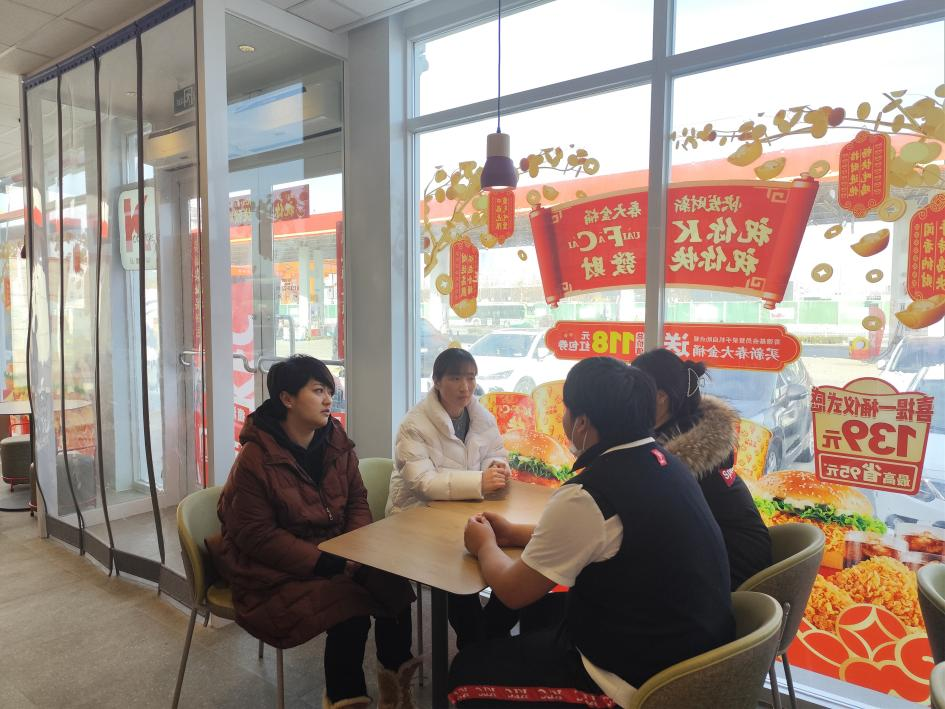 最是情暖岁寒时,一叶一枝总关情。为进一步做好学院拓岗访企和资助育人工作,深入贯彻落实国家和学校的学生资助政策,拓宽学生就业渠道。1月24日,由2026世界杯官网党总支副书记王倩带队,专职辅导员庞轶以及兼职辅导员马晓月前往肯德基商都路博学路中石油店,为正在顶岗实习的家庭经济困难学生送去学校的温暖和新春的祝福。