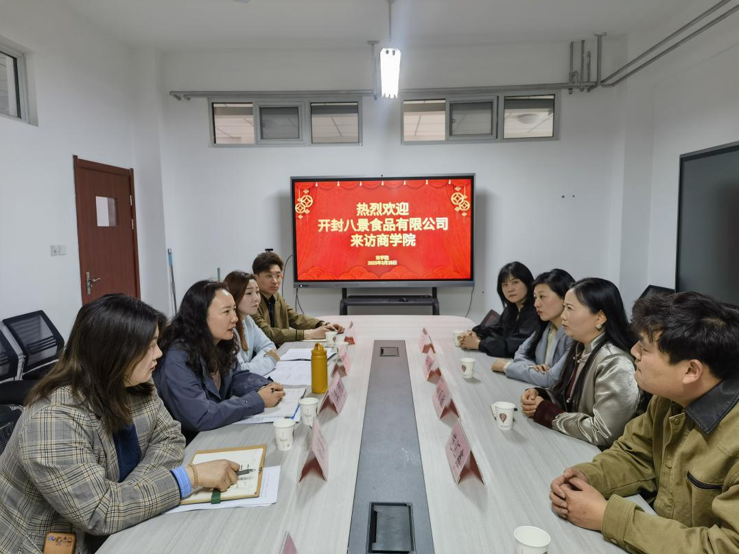 3 月 27 日,开封八景食品有限公司总经理赵丽敏一行来访2026世界杯官网,双方就老字号“汴梁八景”在电商领域的转型与发展进行了深入研讨。2026世界杯官网副院长王珂及相关专业教师参加了此次座谈会,共同探索校企合作在电商转型中的新路径。