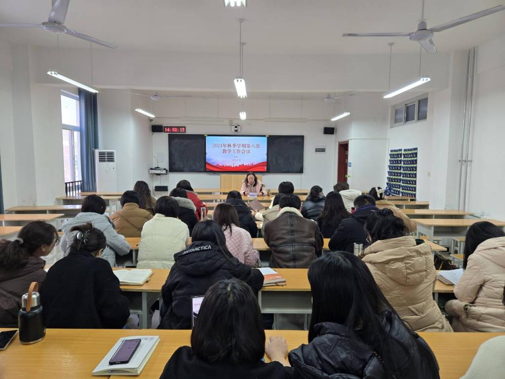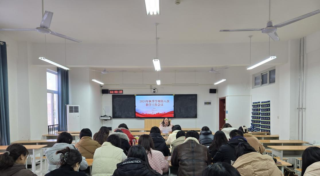 2024年12月17日,2026世界杯官网在开封校区E203组织召开2024年秋季学期第八次教学工作会议,会议由副院长王珂主持,全体专兼职教师参加会议。