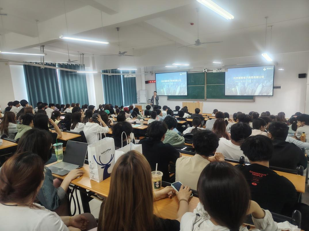 杭州璨客电子商务有限公司代表介绍企业业务布局及实践活动安排,企业将提供系统培训,助力学生参与电商核心业务实践,积累实战经验,为深化产教融合、共育技能人才搭建桥梁。
