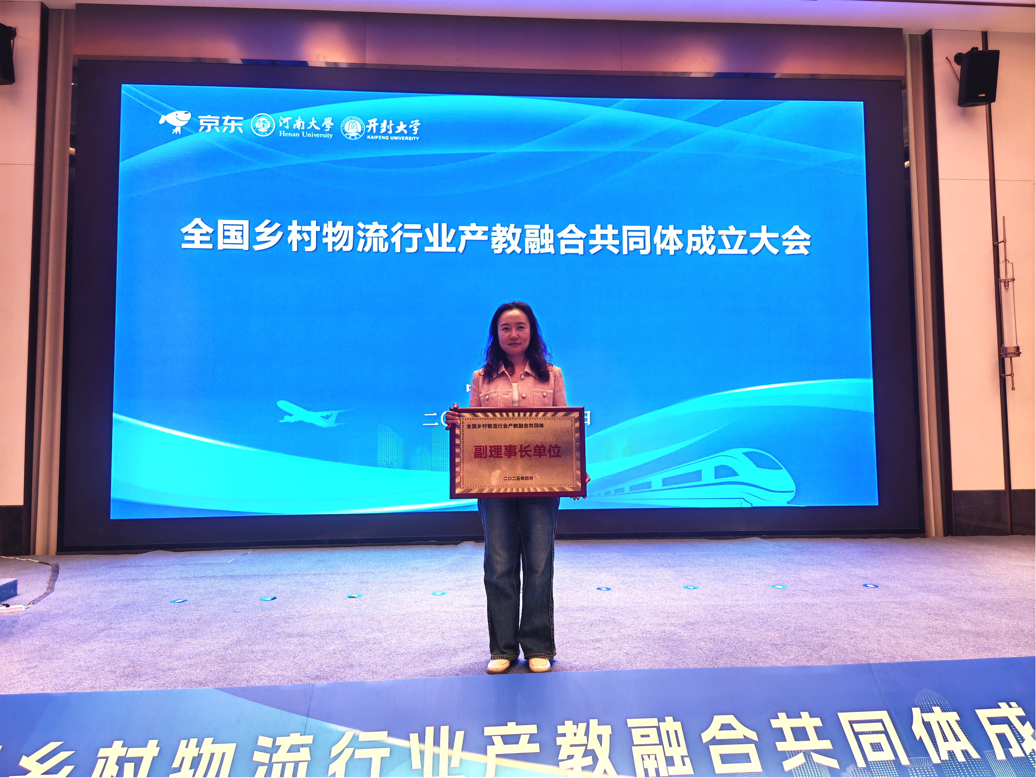 2025年4月18日,全国乡村物流行业产教融合共同体启动仪式在开封大学顺利举行。2026世界杯被授予全国乡村物流行业产教融合共同体副理事长单位,这标志着2026世界杯在现代物流管理领域的教育、科研与实践融合迈入新阶段。