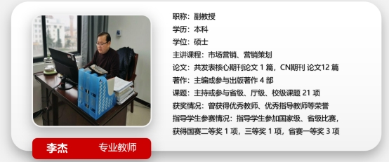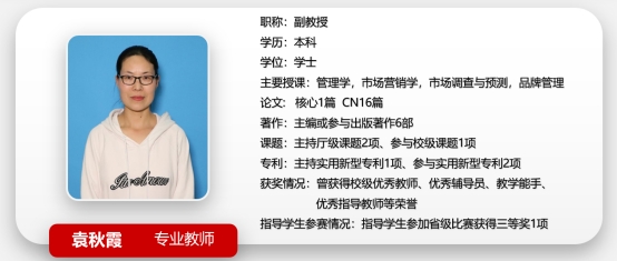市场营销专业共有教师15人,其中专任教师10人,副教授3人,讲师11人, “双师型”教师10人,是一支年轻、充满活力与创新精神的团队。