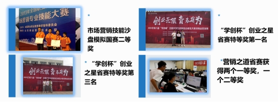技能竞赛成果丰硕,获得2013年市场营销专业技能大赛赛项团体国赛二等奖,2021年河南省高等职业教育技能大赛市场营销技能赛项省级选拔赛二等奖,2022年第九届“学创杯”全国大学生创业综合模拟大赛创业营销专项省级选拔赛特等奖、一等奖、三等奖。