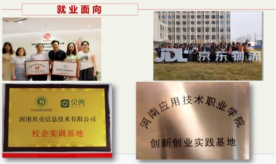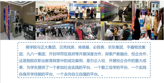 与海一云商、京东、正大集团、贝壳网、慧聪网、河南千蚁、郑州肯德基、丹尼斯、河南物流保税中心、郑州希尔信息技术有限公司、郑州九六—电子商务有限公司等多家企业开展校企合作。