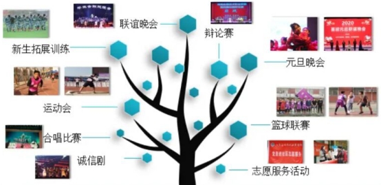 校园生活丰富多彩,有运动会、球类竞赛、文艺晚会、辩论赛等各类活动。